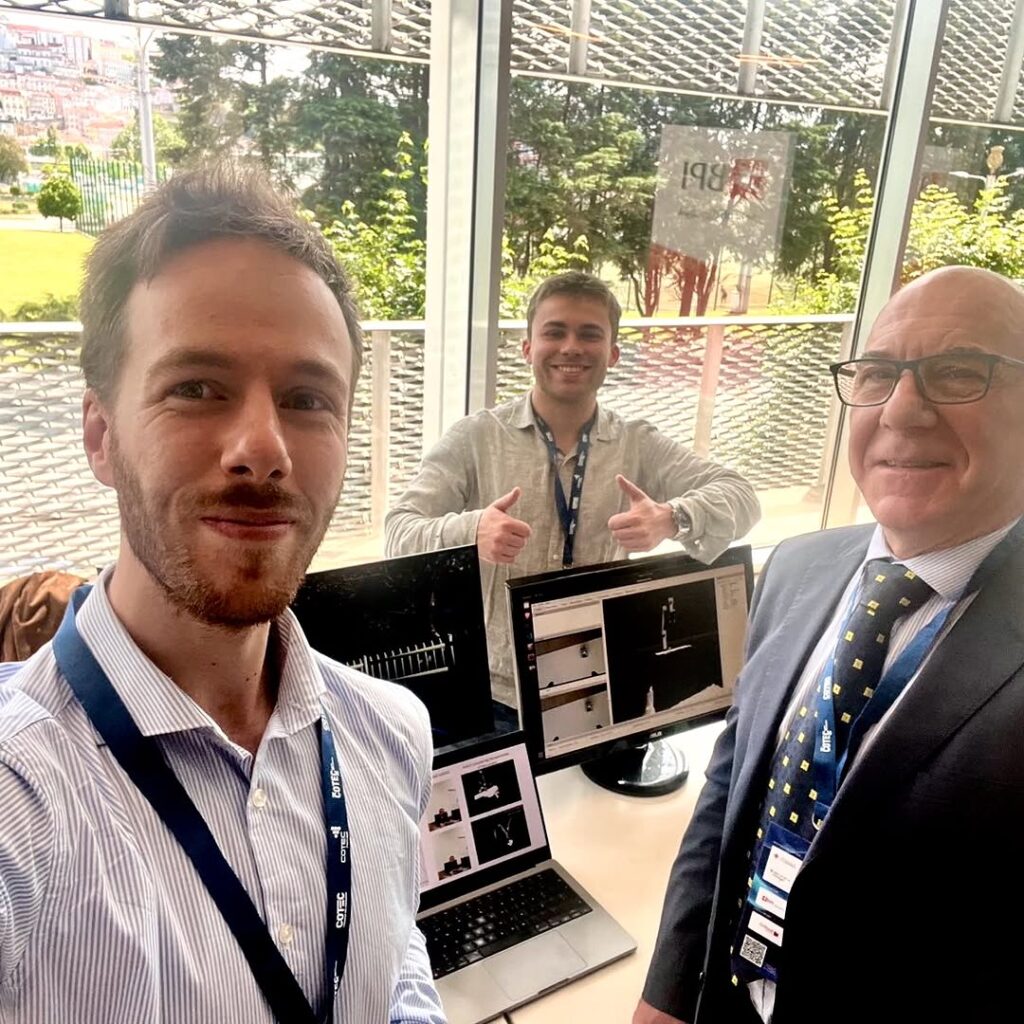 Here, he was able to showcase one of CoDRI’s most recent contributions – EEG-triggered Awareness for a Collaborative Robot. This work was recently accepted for publication in Exp.at 2025, an IEEE sponsored conference which is set to take place in the island of Faial, Portugal, this coming September. Envisioning automated safety procedures, itt proposes the usage of an attention score based on alpha wave activity, obtained via a single-channel EEG BCI, as indicative of human awareness towards robot movement. Here, the robot was set to track the person’s movement during a task, idealizing an industrial collaborative scenario, while they are considered aware. Otherwise, the robot should halt so as to ensure no harm may come to a worker oblivious of their surroundings.